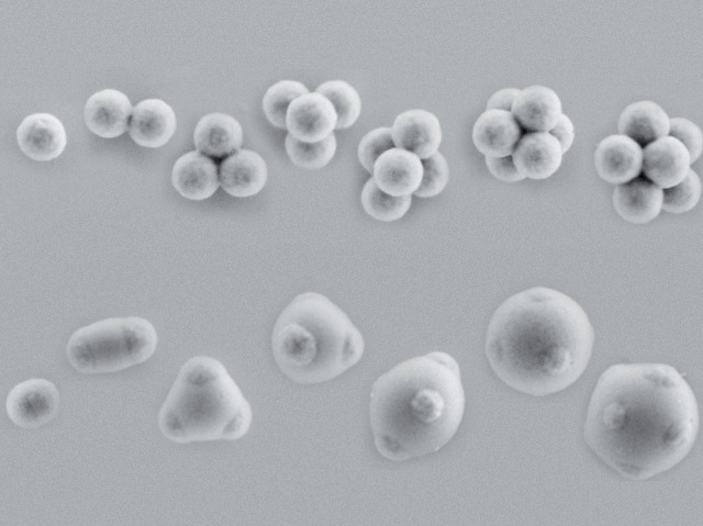 Smaller than specks of dust, these particles have been engineered to self-assemble into geometric shapes – some examples are shown at the top – with a technology that could one day help repair human tissue. Scientists know how to make tiny particles, called colloids, in various shapes but have only now found a way of making them stick together in an organised fashion. Chemical patches are engineered onto the surface of each particle, studded with strands of DNA that poke outwards and behave as ‘sticky ends’ – rather like the snap connectors on toy plastic building bricks. One of many potential applications of this technology is to engineer colloids found naturally in the human body into scaffold-like structures. These could be used to support the growth of cells as they form new tissue or body parts that are highly compatible with the recipient.