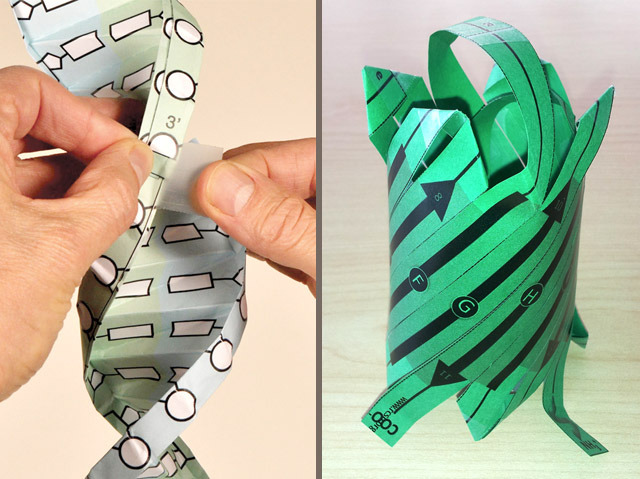 The individual molecules inside our cells are tiny. Their three-dimensional shapes and structures are far smaller than our eyes can make out, and only revealed with high-tech approaches such as powerful microscopes or X-ray crystallography. But these fun origami models – including DNA (left) and a green fluorescent protein – make them larger than life. They've been produced by the Research Collaboratory for Structural Bioinformatics for their Molecule of the Month series, which aims to help learners of all ages explore the world of molecular shapes. And it's not just paper proteins: there are all sorts of other activities too. Enabling people to 'see' these 3D shapes helps them to understand how different molecules function in healthy cells, how they go wrong in disease, and how 'smart drugs' – such as targeted therapies for cancer – lock onto specific parts of proteins in order to do their jobs.