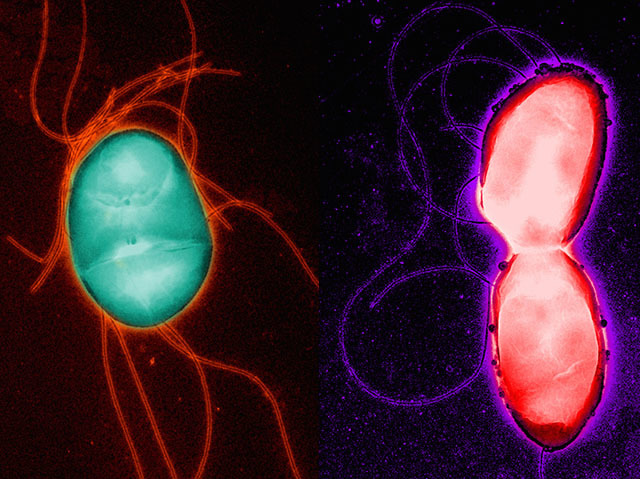It’s far from certain that we can win the war against drug-resistant superbugs by developing more antibiotics – but another line of defence could be the recruitment of 'friendly bacteria' to our side. In a laboratory experiment, scientists noticed that some mice exposed to harmful bacteria were more resistant than others to muscle wasting, a common and dangerous effect of serious infection. The resistant mice were found to have friendly bacteria, a kind of Escherichia coli (E. coli), in their gut, which migrated to fat tissue during infection and stimulated production of a growth hormone called IGF-1. This helped to maintain healthy muscle, boosting the animal’s ability to survive. When oral doses of E. coli were given to other mice, they developed resistance to muscle wasting during potentially lethal infections by Salmonella typhimurium (pictured right) and Burkholderia thailandensis (left). Now, the hunt is on for similar ‘double agent’ bacteria in humans.