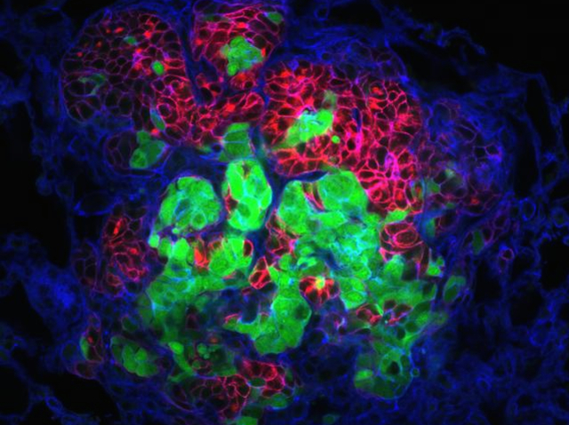 One of the greatest obstacles to eradicating cancer is its ability to seed new tumours in other tissues, a process known as metastasis. Researchers working on breast cancer in mice have recently shown that, to successfully establish these secondary tumours, cancer cells work as a team. By monitoring the behaviour of fluorescently-labelled tumours, they found that multiple cells often travel and invade tissues together. For example, the presence of both red and green-labelled cells in the metastatic tumour pictured reveals that it was seeded by cells from at least two different populations, like over 90% of the secondary tumours studied. Collaborating seems to help cancer cells overcome the body’s defences, making them much more likely to conquer new territories than if they attempted it alone. Crucially, the study also identified cell surface proteins specific to travelling cancer cells, potentially useful markers for identifying and targeting those responsible for metastasis.