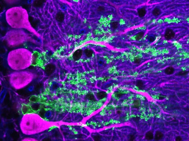 In the adult mammalian brain, the glial cells (shown here coloured green in a section of mouse cortex) are generally speaking supporters and modulators of the all-important neurons (magenta) –the electrical cells that store, process and deliver information at lightening speed. But new research suggests that neurons don’t just rely on glia for support, they also dictate the cells’ fates. The brain contains a variety of glial cell types possessing different specialised functions, and it was thought that these identities were established and fixed during embryo and early postnatal development. Scientists have now discovered, however, that a glial cell’s identity remains malleable into adulthood. It turns out that neurons in the adult brain continuously release fate-determining molecular signals, which neighbouring glia require to maintain their identity. Exactly how this previously unappreciated glial plasticity ultimately affects an animal’s behaviour and brain functions has yet to be determined.