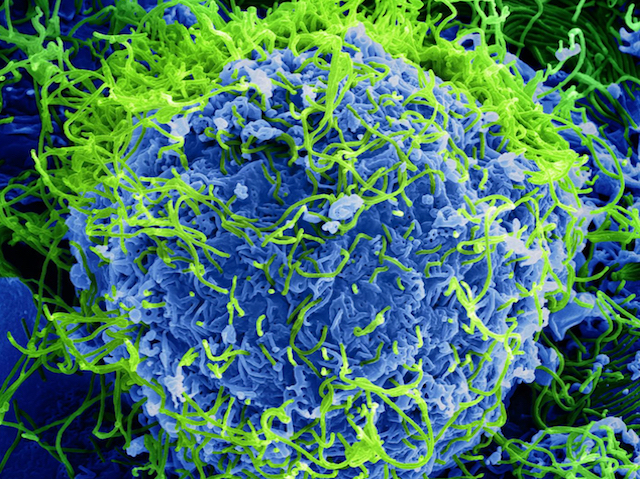 In the Democratic Republic of the Congo, the current outbreak of Ebola virus – shown here coloured green attacking a human cell (blue) – has infected nearly 500 people and killed approximately half of them. While the outbreak is nowhere near the scale of the 2014–2016 outbreak in West Africa, which killed more than 11,000 people, it’s the worst in the country’s history and it’s not over. Indeed, cases of the disease have recently been reported in Butembo, a city of more than a million residents. Unlike the earlier West African outbreak, however, there are some promising, albeit largely untested, clinical interventions available. A new vaccine is being widely deployed, for example, and, for people already infected, trials of novel treatments – including monoclonal antibodies and an antiviral drug – have recently begun. Now, it’s a case of waiting to see whether any of these approaches are effective and whether lives can be saved.