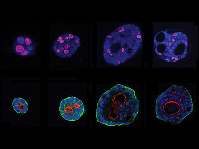 To study skyscraper design or aeroplane flight dynamics, you might make a small model before tinkering with the real thing. Researchers take a similar approach to studying our organs. Clusters of cells resembling miniature organs are used to mimic conditions like cancer on a safe and manageable scale demonstrating how they take hold in our body. For example, scientists studying oesophageal cancers have been hampered by a lack of experimental options, but have now produced organoids that replicate the molecular, physiological and genetic environment of the disease. These organoids – pictured at 3, 7, 14 and 21 days of development from a tumour-derived starting point – provide a new realistic platform for testing drugs and other treatments, as well as observing disease progression, without endangering human or animal test subjects.