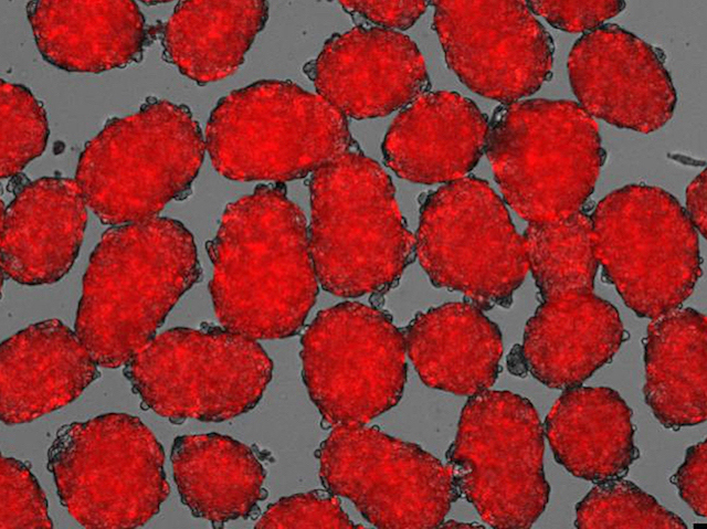 Stem-cell therapy offers great hope for diseases in which certain types of cells are dysfunctional or dying – such as diabetes, which affects insulin-producing beta cells of the pancreas. The idea is that the desired replacement cells can be grown from human stem cells (capable of developing into almost any cell type) and then engrafted into the patient. Over the years, scientists have been working to create effective stem-cell derived beta cells, but often these cells’ insulin production has been erratic. Now, through painstaking tweaking of the culturing conditions, researchers have come up with their best beta cell recipe yet. Indeed, the new improved cells (pictured) are superior at responding to glucose and appropriately secreting insulin (stained bright poppy red) than previous versions. And, when transferred into mice, these cells could effectively control the animals’ blood sugar for months. As such, the cells may be nearing readiness for clinical trial.