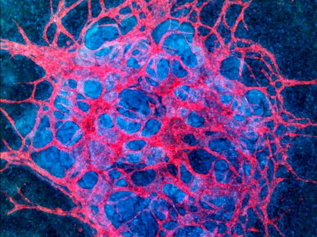 Organoids – mini lab-grown versions of organs – have revolutionised research into cell and tissue biology, whether for the study of development, disease, or responses to drugs. But, organoids have their limitations when it comes to recapitulating the real things. Most notably, they lack blood vessels. Therefore, the development of highly vascularised kidney organoids – like the one pictured – represents a major step forward in organoid research. To instigate the growth of blood vessels in the mini kidneys, researchers subjected the developing organoids to fluidic shear stress – the force exerted by a flowing fluid – which is known to be important for proper vascular development within a growing embryo. Sure enough, it worked, producing a network of capillary-like structures as the organoids grew. Moreover, the improved supply of oxygen and nutrients within the organoids improved the development of their glomeruli – filtration units – such that they were more akin to those of real kidneys.