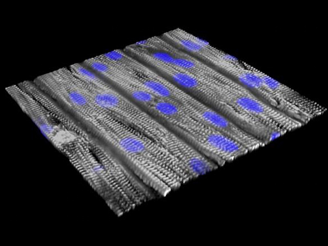 A reliable heartbeat is essential for keeping a steady flow of blood going around the body. But some people have genetic alterations that cause their hearts to beat irregularly in response to exercise or stress (a condition known as CPVT), which is a major cause of sudden death in children and young adults. It’s hard to get hold of heart muscle from people with CPVT to study in the lab, but scientists have now come up with a clever solution. They’ve been turning patients’ blood cells into stem cells and growing them into slabs of heart muscle like the one shown here. The lab-grown muscle cells can ‘beat’ just like a human heart and replicate the irregular rhythms seen in people with CPVT under conditions that mimic exercise. These ‘hearts in a dish’ are a powerful tool for testing potentially lifesaving new treatments for the disease such as gene therapy.