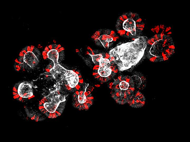 In a rapidly ageing population, understanding how our cells change as we get older has never been more important. In the intestinal epithelium, the lining of our gut, stem cells divide to renew surrounding tissues, but this regeneration slows as we age. Using the ability of cultured intestinal stem cells (ISCs) to form clusters of cells, known as organoids (pictured), as a measure of their regenerative capacity, a recent study revealed that signals from neighbouring Paneth cells (in red) are responsible for this decline. Young ISCs surrounded by old Paneth cells show reduced organoid formation, as older Paneth cells secrete higher levels of Notum, an inhibitor of the critical Wnt signalling pathway required for stem cell activity. By contrast, blocking Notum boosts activity in old ISCs, suggesting that this could be a promising way to stimulate regeneration and thus help intestinal tissues to recover from damage, especially in older patients.