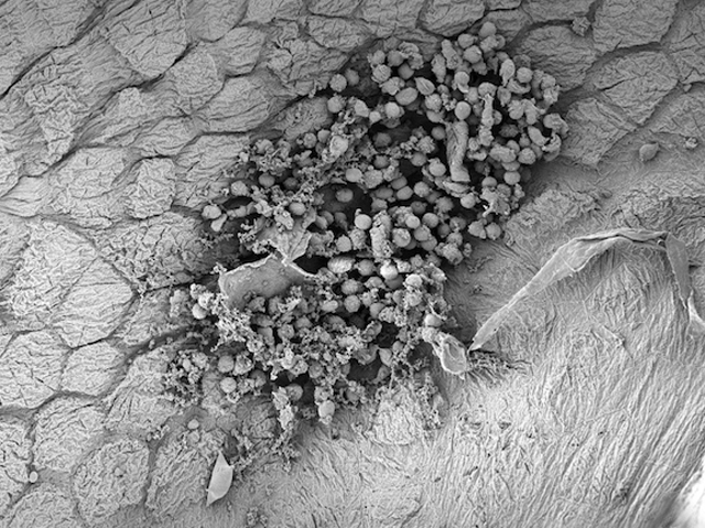 Whether good or bad, our experiences shape our reactions to situations. It’s true at a cellular level too. A bladder infection today could make you more or less susceptible to recurrent bladder infections in the future. Researchers investigate what tips the balance using mice. Mouse bladders were infected with bacteria either for the first time or after having a previous bladder infection. Infection causes immune cells to gather around infected cells lining the bladder’s interior, as captured here by researchers using scanning electron microscopy. Inflammation, kicked off by a molecule called TNFalpha, also occurs. In mice previously exposed to bladder infection, inflammation occurred more quickly. If the previous infection was chronic, inflammation was prolonged and harmful, worsening the current infection. But if the previous infection resolved itself, inflammation helped clear the current infection. Those first experiences of infection therefore rewire TNFalpha signalling to affect future infections.