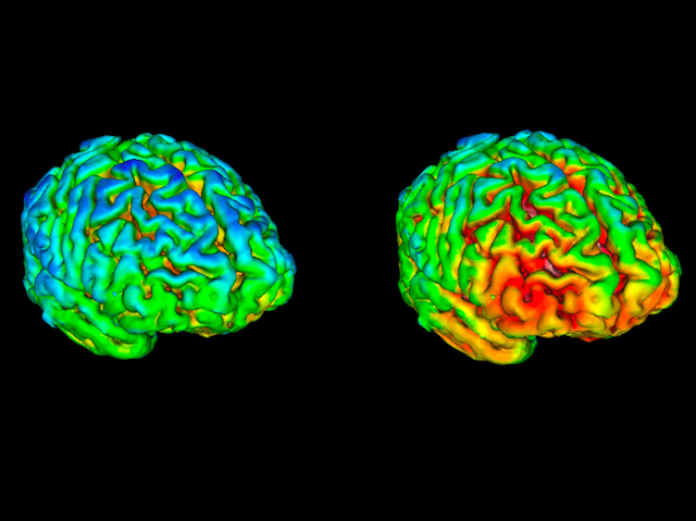 Advanced brain scans have indicated for the first time that people with schizophrenia have reduced connections between their brain cells. Changes in these connections, called synapses, have been thought to cause schizophrenia for over forty years, but it’s not previously been possible to study in living people. The latest research used scans that depict around 100 trillion synapses. Participants were injected with a 'tracer' that emits a signal detected by the scanner. The tracer binds to a synaptic protein and therefore acts as an indirect measure of synapse density. Only a few groups in the world have this new tracer. Here, lower synapse levels (blue) are shown for people with schizophrenia (left), compared to higher levels (red) in healthy volunteers (right). Reductions are greatest in the front of the brain that plays a key role in thinking, planning and emotions. Future treatments could aim to restore synapse function.