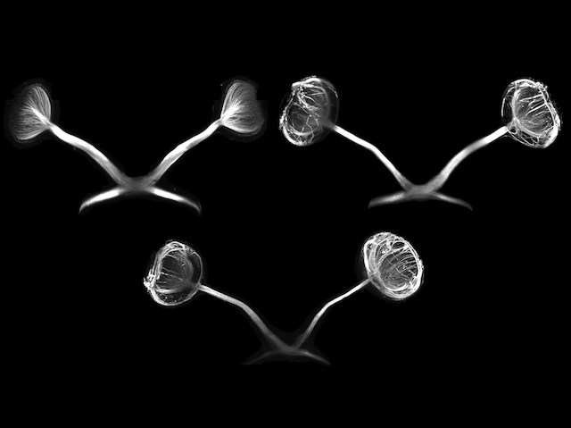 Your eyes look at the world but it's your brain that sees it. This is thanks to your optic nerve, which connects to nerve cells in the backs of your eyes (retina) to deliver their messages to your brain for interpretation. Development of the optic nerve involves the gene Dcc. Researchers now probe what Dcc is doing here using confocal microscopy (pictured) to image nerve cells in the eyes. In mutant mice lacking Dcc in their eyes, projections from nerve cells within the retina failed to connect up to the optic nerve (bottom) as occurs in normal mouse eyes (top, left). Instead, projections stalled or went in the opposite direction, similar to mutant mice lacking the protein, netrin, which is known to guide nerve cells (top, right). Dcc is therefore vital in properly wiring up the eyes to the brain.