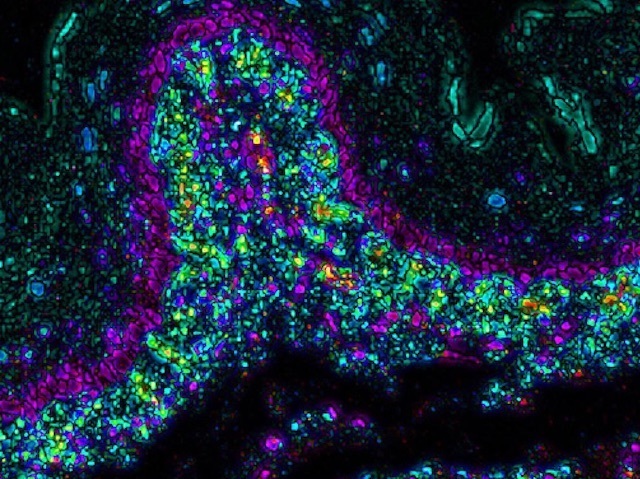 Eating a delicious meal is one of life’s great joys, but for some each mouthful is a struggle and a risk. Eosinophilic oesophagitis is a chronic food allergy in which immune cells called eosinophils amass in the oesophagus (the tube between mouth and stomach) and spark an allergic reaction. Research has shown that patients lack SPINK7, a protein that inhibits the premature breakdown of food material that might damage the oesophagus lining. Without this, the unprotected lining becomes degraded and eosinophils swarm to the site, causing inflammation. A new study has shown that treating mice with a replacement inhibitor (cells bound by the inhibitor in green in the mouse oesophagus pictured) reduced symptoms. The study confirms the mechanism behind the disease, which has only recently been recognised and disproportionately affects children, and points the way for future treatments.