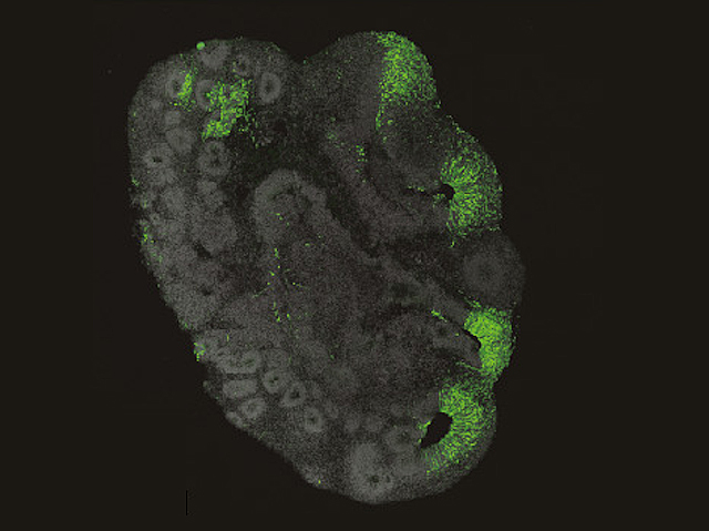 Humans have the largest brain relative to their size of any creature, and the most complex with 100 billion neurons, each capable of having up to 15,000 connections. How our brains evolved that complexity wasn’t clear, but scientists have now identified a gene that might explain why. The gene called ARHGAP11B, is unique to humans and is crucial for the development of the neocortex – the brain region involved in higher-order functions like cognition and sensory perception. Studying how the neocortex evolved is challenging, but the development of organoid technology has opened doors. Researchers created ‘artificial brains’ from both human and chimpanzee stem cells. By adding ARHGAP11B to the chimpanzee brain organoids (areas highlighted in green), they found an increase in brain stem cells that drive growth and neurons involved with heightened mental capabilities. This suggests that ARHGAP11B played a crucial role in the evolution of the brain from our ancestors to modern humans.