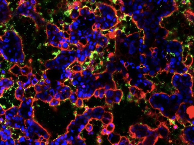 Like loving gardeners fending off invasive weeds, some bacteria protect and nourish your gut while blocking out harmful bacteria that would burst in and wreak havoc. The relationship between these microbes is fundamental to gut health, so researchers are developing new platforms to observe and study this delicate balance. A team has recently established a miniature 3D recreation of conditions in the human gut (pictured). If bacteria can colonise the cells in this replica as they do in the gut then it would create an ideal stage to watch the interactions unfold. The researchers found that mechanical forces prompted the gut cells to secrete mucin, a mucus (red) that is both the first line of defence against, and an attachment point for, bacteria. They found that E. coli (green) colonised this layer, showing that the model can host bacteria, so the stage is set for investigation to begin.